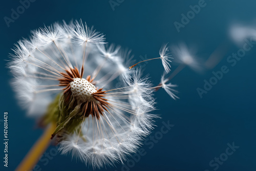 © Emanuel, Fototapeta premium Close up of dandelion spore blowing away