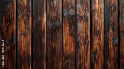 Fototapeta premium Close-up of Dark Brown Wooden Planks Rustic Texture Background Natural Lighting Photorealistic