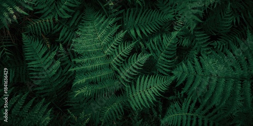 © vxnaghiyev, Obraz premium Close-up of dark green fern foliage used as a natural background for text or design, plant detail