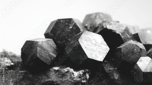 Naklejka premium Close-up of dark hexagonal crystals against a light background, showcasing...
