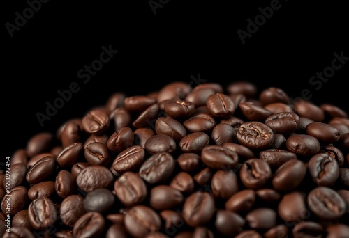 Fototapeta premium Close-up of dark roasted coffee beans against a black background Plenty of copy space, gourmet, coffee industry
