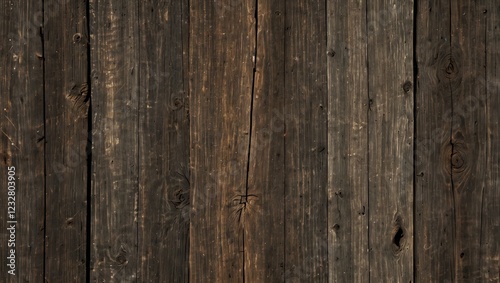 © Laiba, Naklejka premium Close-up of dark, textured wooden surface with vertical planks, visible knots, and rustic grain