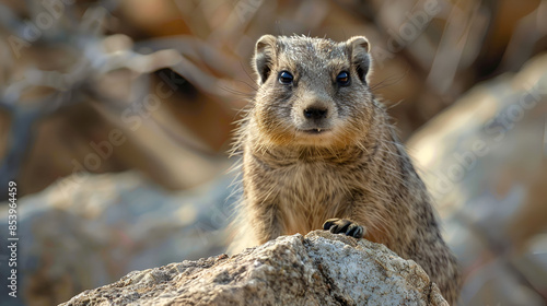 © Saba, Fototapeta premium Close up of Dassie on the rocks in Hermanus, Common Rock Hyrax - Procavia capensis, small mammal from African hillls and mountains, Namibia