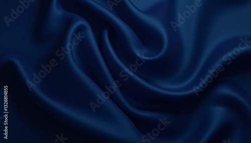 Obraz premium Close-up of deep blue satin fabric, elegant texture with soft drapes and smooth curves, copy space