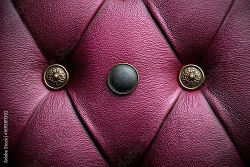 © Ember, Obraz premium Close-up of deep maroon leather upholstery with diamond-shaped quilting and decorative buttons