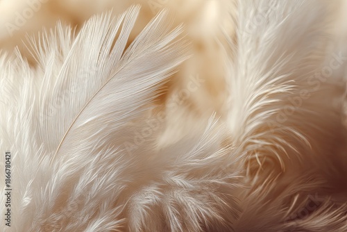 Obraz premium Close-up of delicate, creamy-white feathers, blurred background, soft...