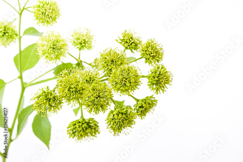Fototapeta premium Close-up of delicate green flowers on a white background
