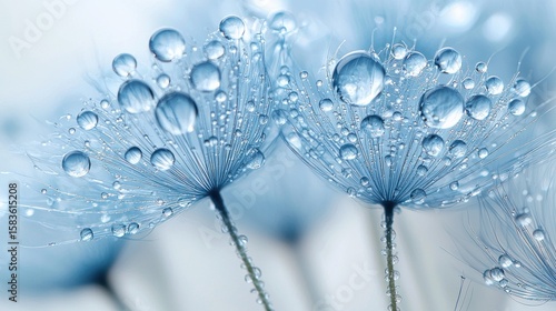 Fototapeta premium Close-up of delicate light-blue seed heads, glistening with water droplets