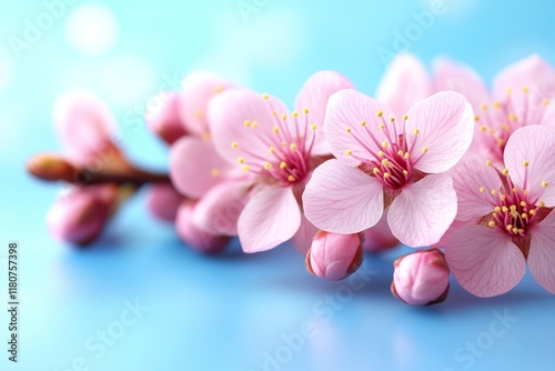 © eQuinox Studio, Fototapeta premium Close-up of Delicate Pink Almond Blossoms on a Branch
