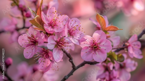 © Lakkhana, Fototapeta premium Close-up of delicate pink cherry blossoms