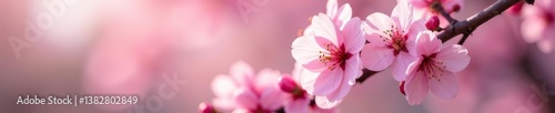 Fototapeta premium Close-up of delicate pink cherry blossoms on tree branches with shallow depth of field, fresh, bloom, flowers
