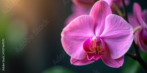 © Thiti, Obraz premium Close-up of delicate pink orchid with lush petals, botany, vivid