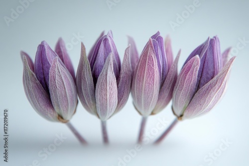 Fototapeta premium Close-up of delicate purple flower buds on white background