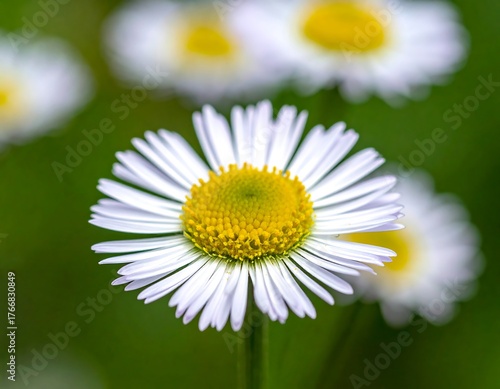 © enak, Obraz premium Close-up of delicate white daisies with yellow centers and blurred background