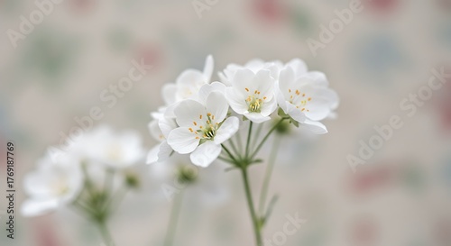 © humaira, Fototapeta premium Close up of delicate white flowers blooming with soft textured background