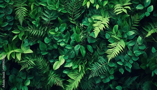 © ma, Fototapeta premium Close-up of densely arranged lush green plant leaves.