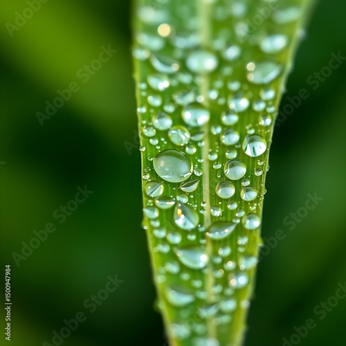 Fototapeta premium Close-up of dew-covered green leaf with sharp focus