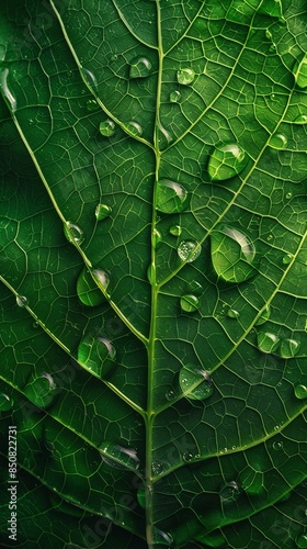 Obraz premium close up of dewdrops on green leaves in the morning, vertical background