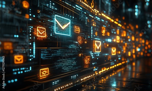 © dia, Obraz premium Close-up of Digital Email, Phone, and Message Icons on Modern LED Interface Display Concept for Communication and Technology