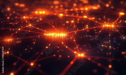 Fototapeta premium Close up of digital network with multiple servers. Virtual connections and data centers highlighted with bright lights.
