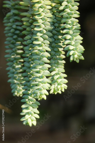 Naklejka premium Close up of donkey tail ornamental plant. Copy space for text. For graphic...