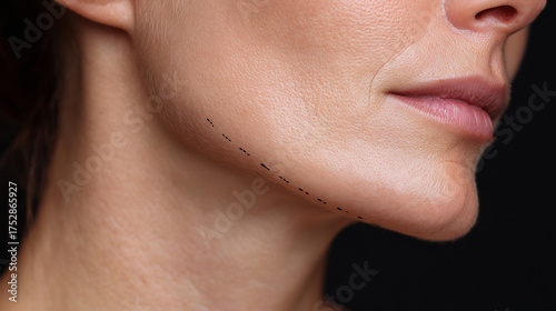 © Kristina, Obraz premium Close-up of dotted lines around the chin and jawline