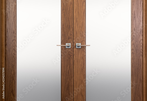 © Bakulov, Naklejka premium Close-up of double-leaf interior swing doors.
