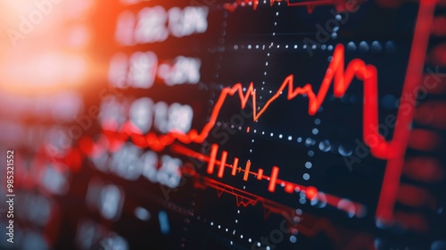 Fototapeta premium Close-up of downward-trending line graph on digital screen, symbolizing drop...