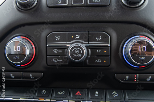 © nsc_photography, Fototapeta premium Close up of dusty control panel of a new vehicle