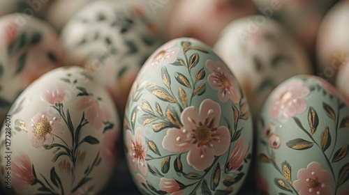 Fototapeta premium Close-up of Easter eggs with floral patterns