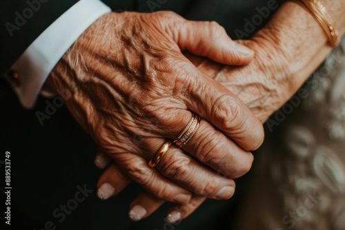 Fototapeta premium Close-up of elderly couple holding hands, showcasing love, companionship, and...