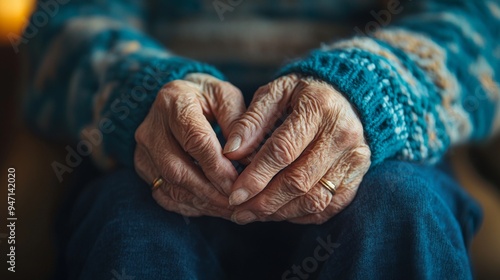 Fototapeta premium Close-up of elderly couple holding hands, symbolizing enduring love and commitment