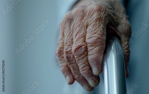 © MNFTs, Fototapeta premium Close-up of Elderly Hand Holding Railing.
