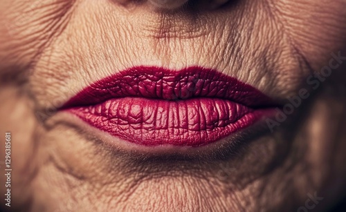 Obraz premium Close-Up of Elderly Womans Lips with Red Lipstick