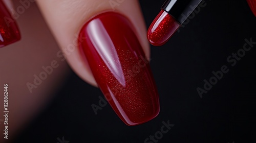 Obraz premium Close-up of elegant red nail polish with glitter accents, showcasing a...