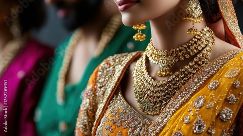 © AYB, Obraz premium Close-up of elegantly dressed individuals in traditional attire showcasing intricate jewelry and vibrant colors