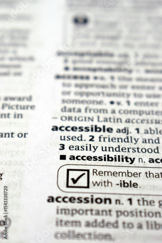 © BlueMistFilmStudios, Obraz premium Close Up Of English Dictionary Page With Word - Accessible