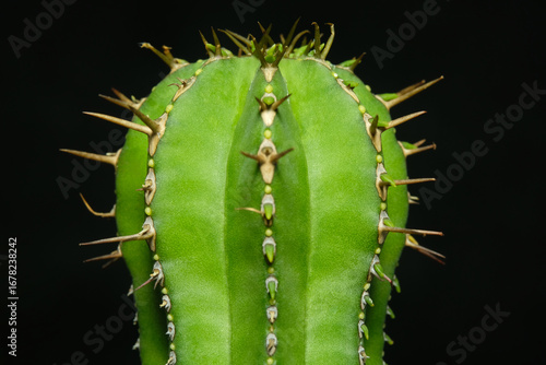 © miniartkur, Naklejka premium Close up of Euphorbia fruticosa plant. Isolated on black background