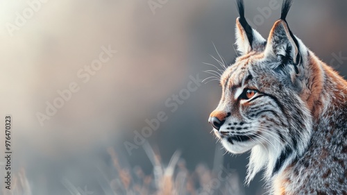 © Artyom, Fototapeta premium Close-up of Eurasian lynx with detailed fur patterns in natural setting