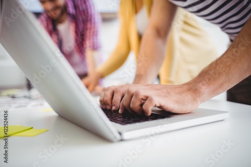 © WavebreakmediaMicro, Fototapeta premium Close-up of executive typing on laptop at creative office
