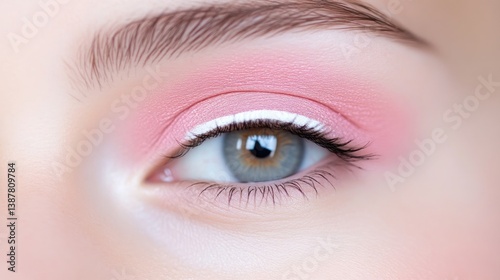 Obraz premium Close-up of eye makeup. Soft pink eyeshadow, white eyeliner, and subtle blush