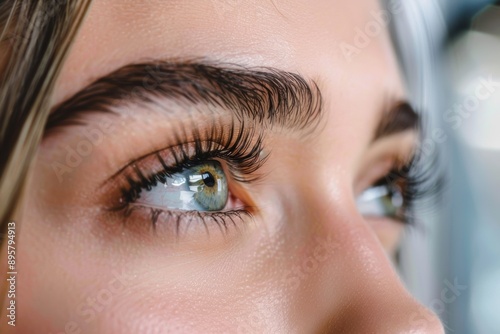 © Наталья Добровольска, Fototapeta premium Close up of eye with eyelash extensions ,beauty salon treatment