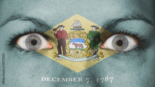 © michaklootwijk, Naklejka premium Close up of eyes with flag