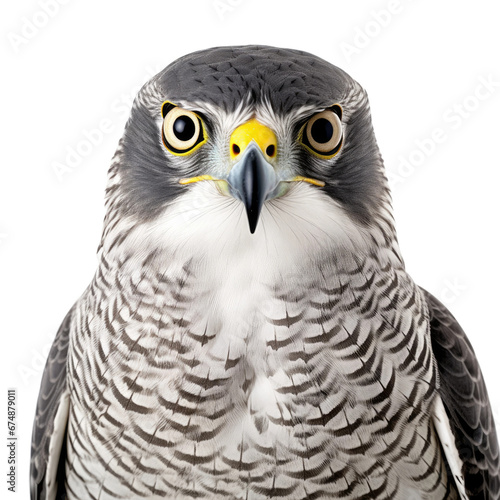 Fototapeta premium Close-Up of Falcon with Sharp Eyes Isolated on White Background, Bird of Prey