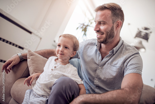 © ivanko80, Obraz premium Close up of father and son at home.