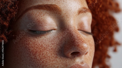 © WS Studio 1985, Fototapeta premium Close-Up of Female Face with Freckles and Eyes Closed