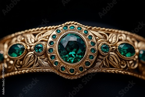 Obraz premium Close-up of fine jewelry with sparkling gemstones set in gold, capturing the...