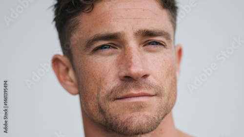 © Andrei, Fototapeta premium close-up of fitness coach confident expression highlighting features with minimalistic background