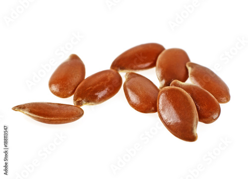 Obraz premium Close up of flax seeds isolated on white background