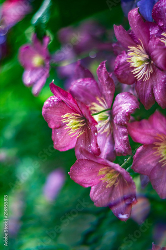 © ulchiva, Fototapeta premium Close-up of flowers of clematis with blured background